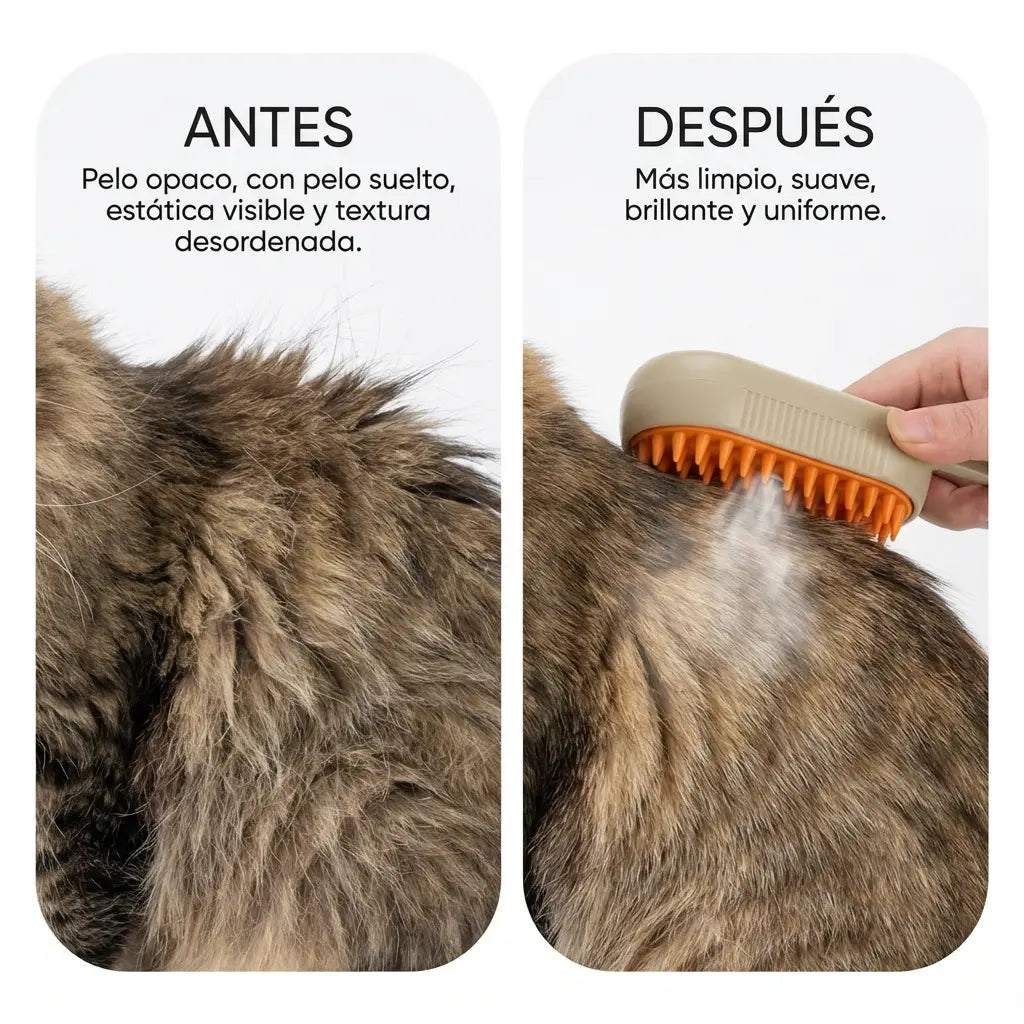 Note que el pelaje de su mascota se volvió más suave y brillante después de usar este cepillo